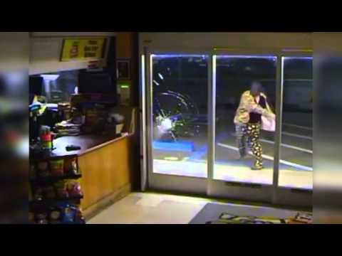 加州一家肉品暨雜貨店日前打烊後險遭小偷,穿著睡褲的竊賊企圖砸門入內未果,卻被警報器響聲嚇到逃跑還跌倒,店家將監視錄影帶畫面製成趣味廣告,網路走紅。